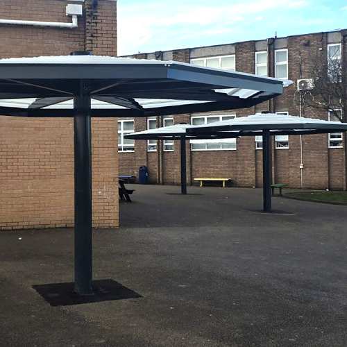 This was the fourth school we’ve worked on with Julie Mounfield, Operations & Facilities Manager, and the third within the Co-op Academies Trust. We were brought in with a simple aim: create long-lasting covered outdoor dining space the school could use in wet weather.